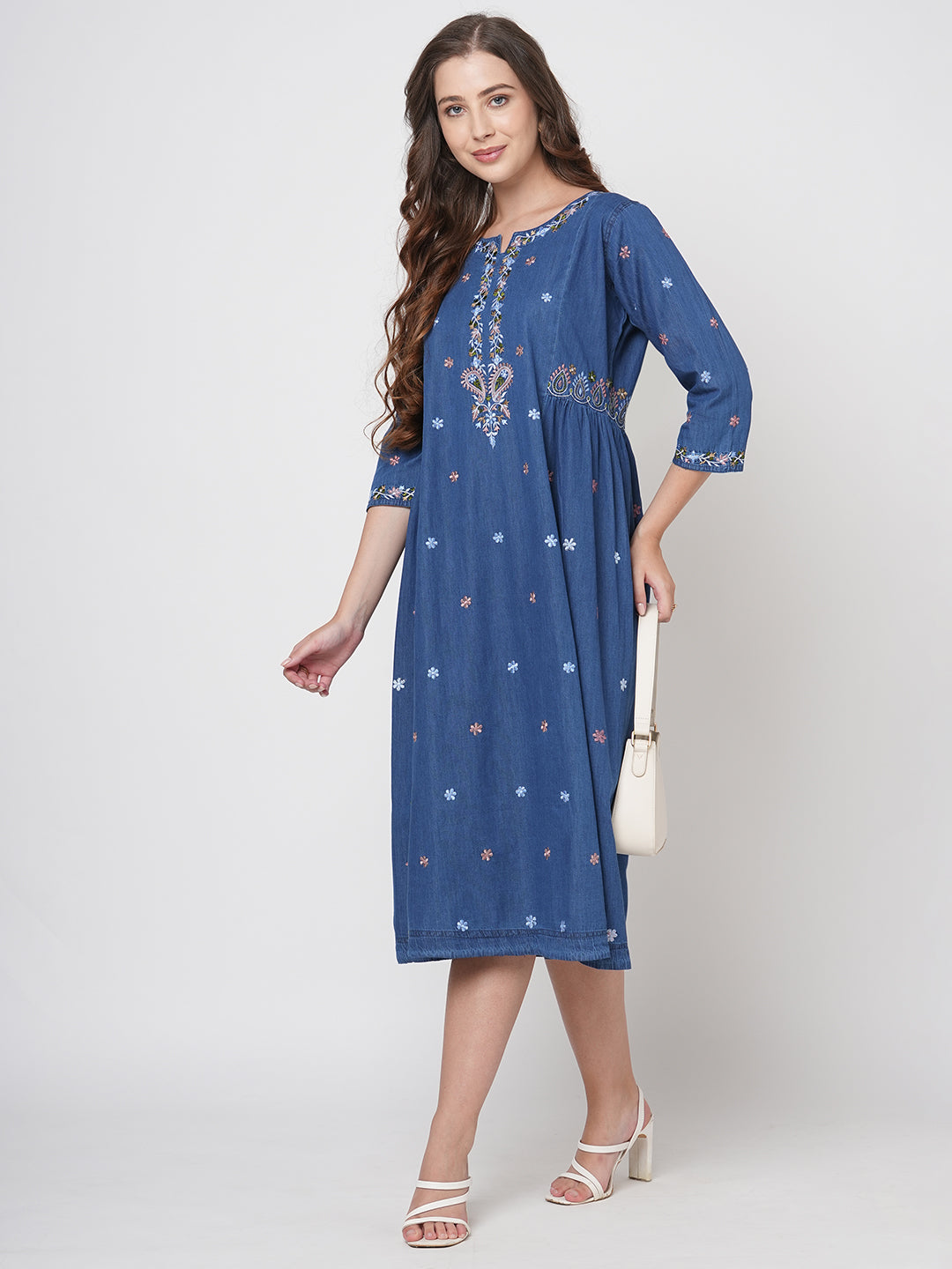 Denim Dress for Women, Multi Color Embroidery All time Fashion