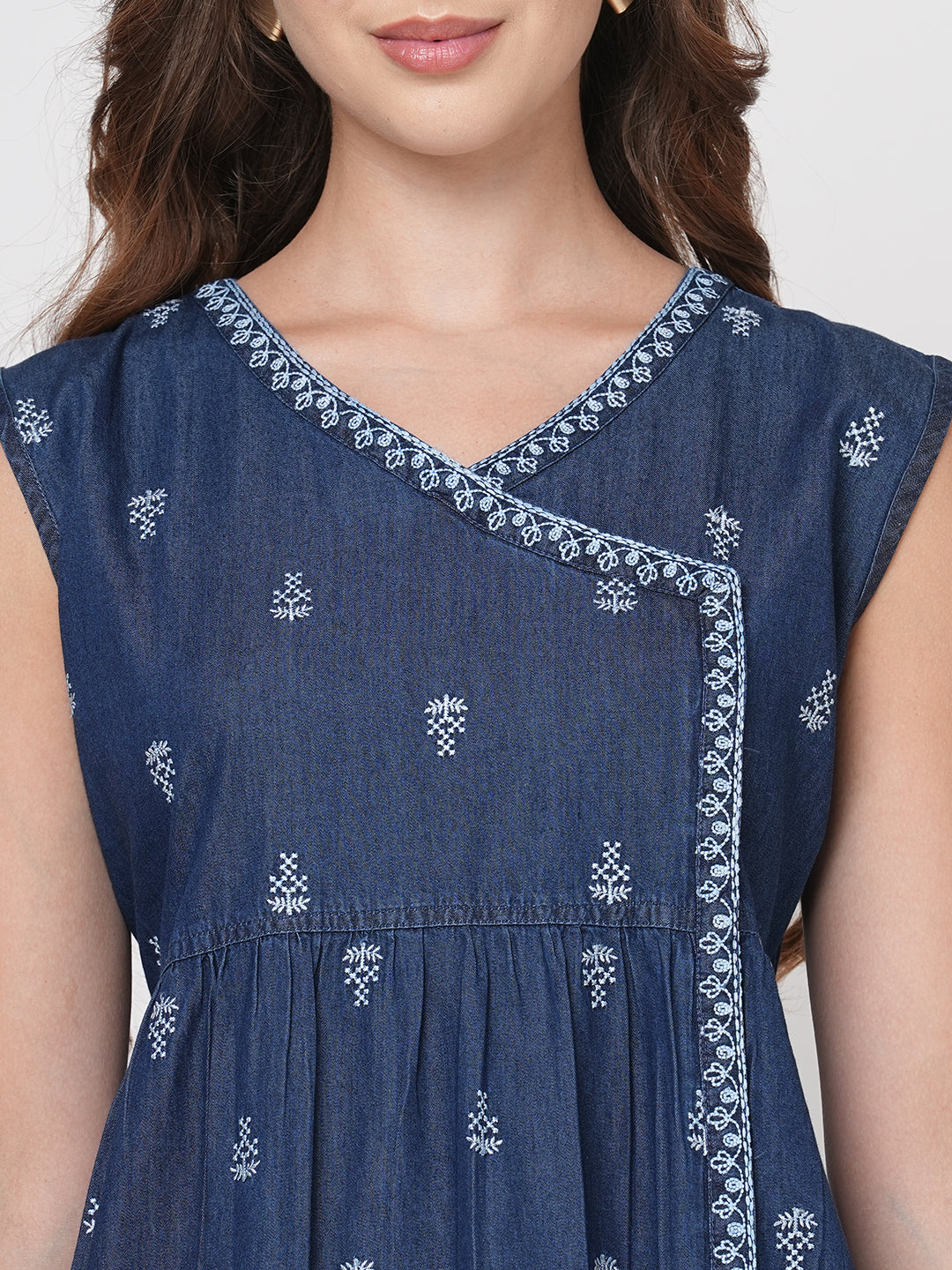 - Pleasant look, Soft denim, Little floral embroidery gives descent look. Very comfortable. Casual wear, office wear