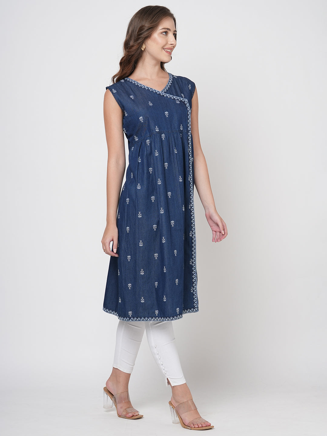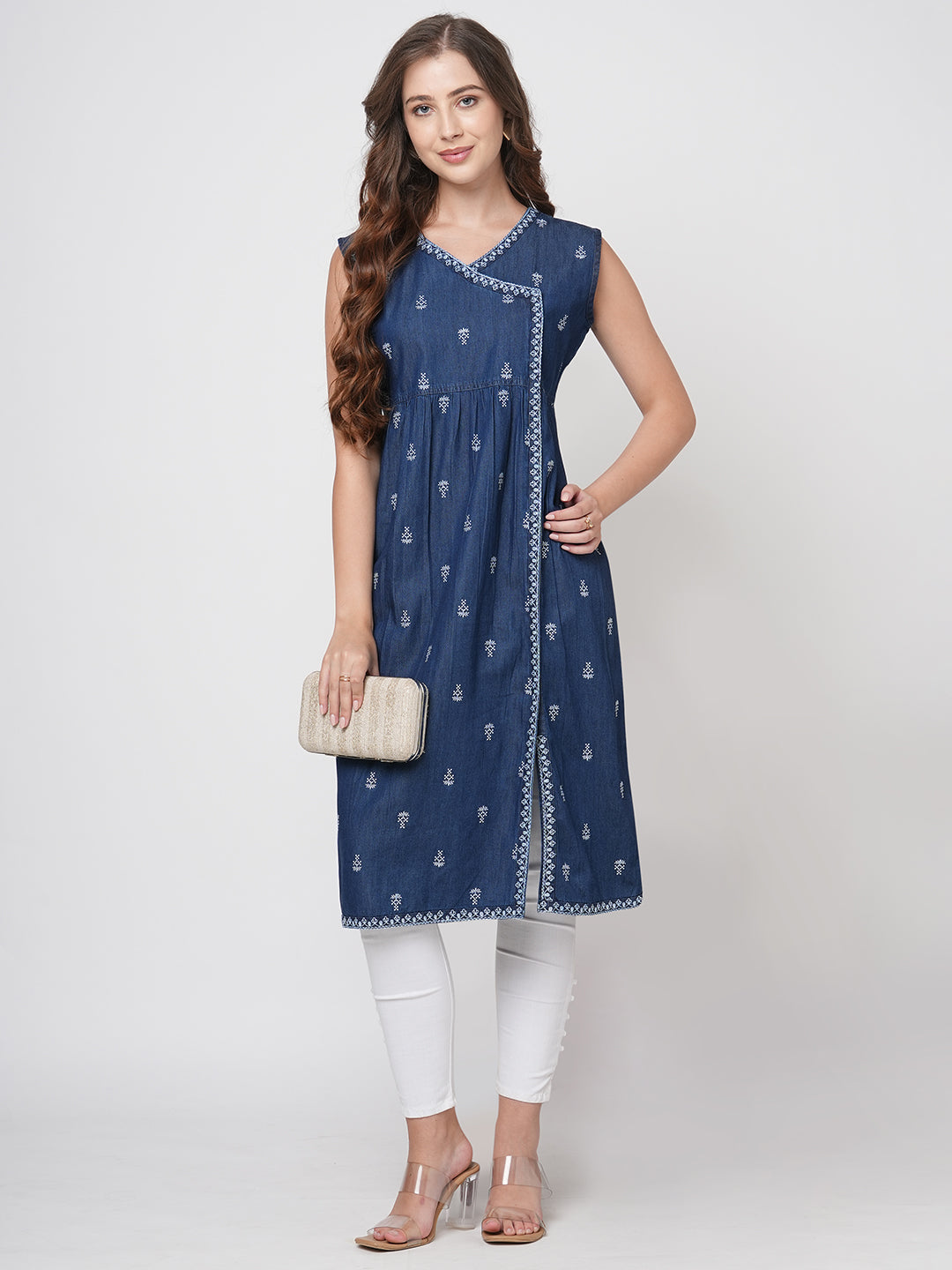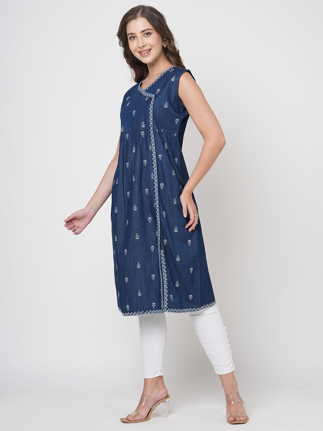 Denim Sleeveless Kurti, Separately Half Sleeves Available with Kurti