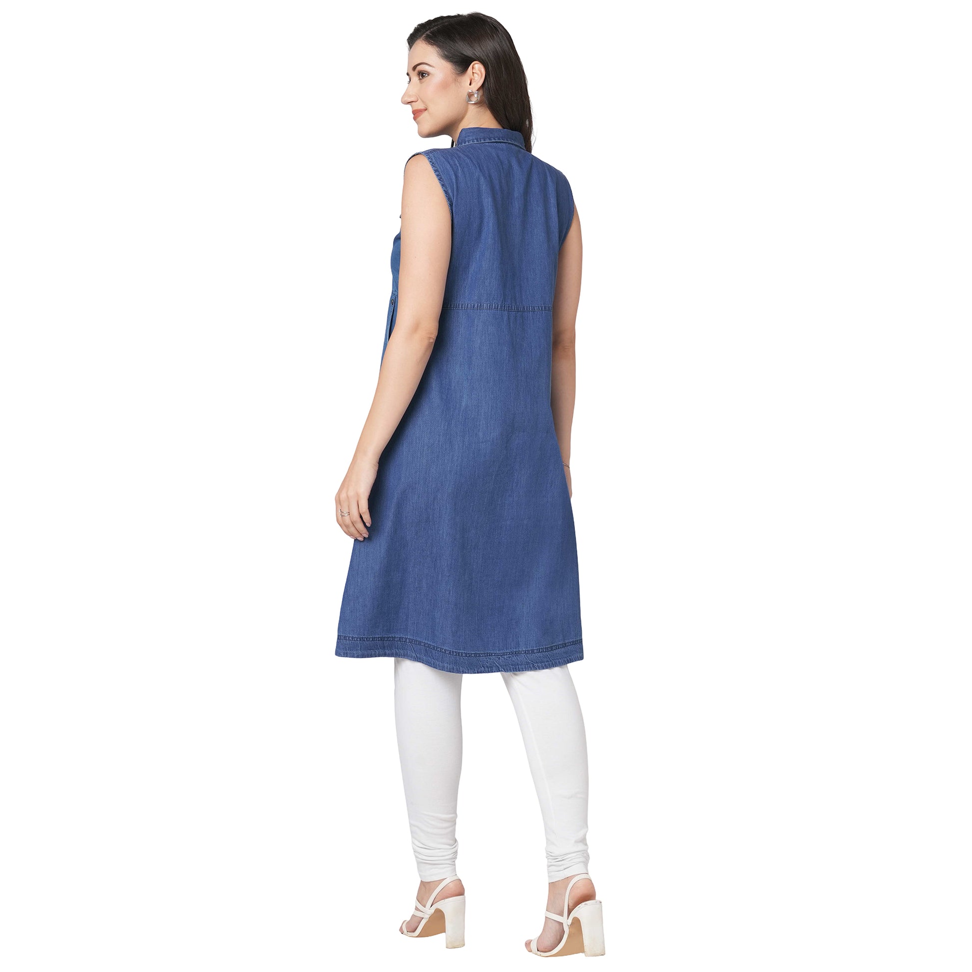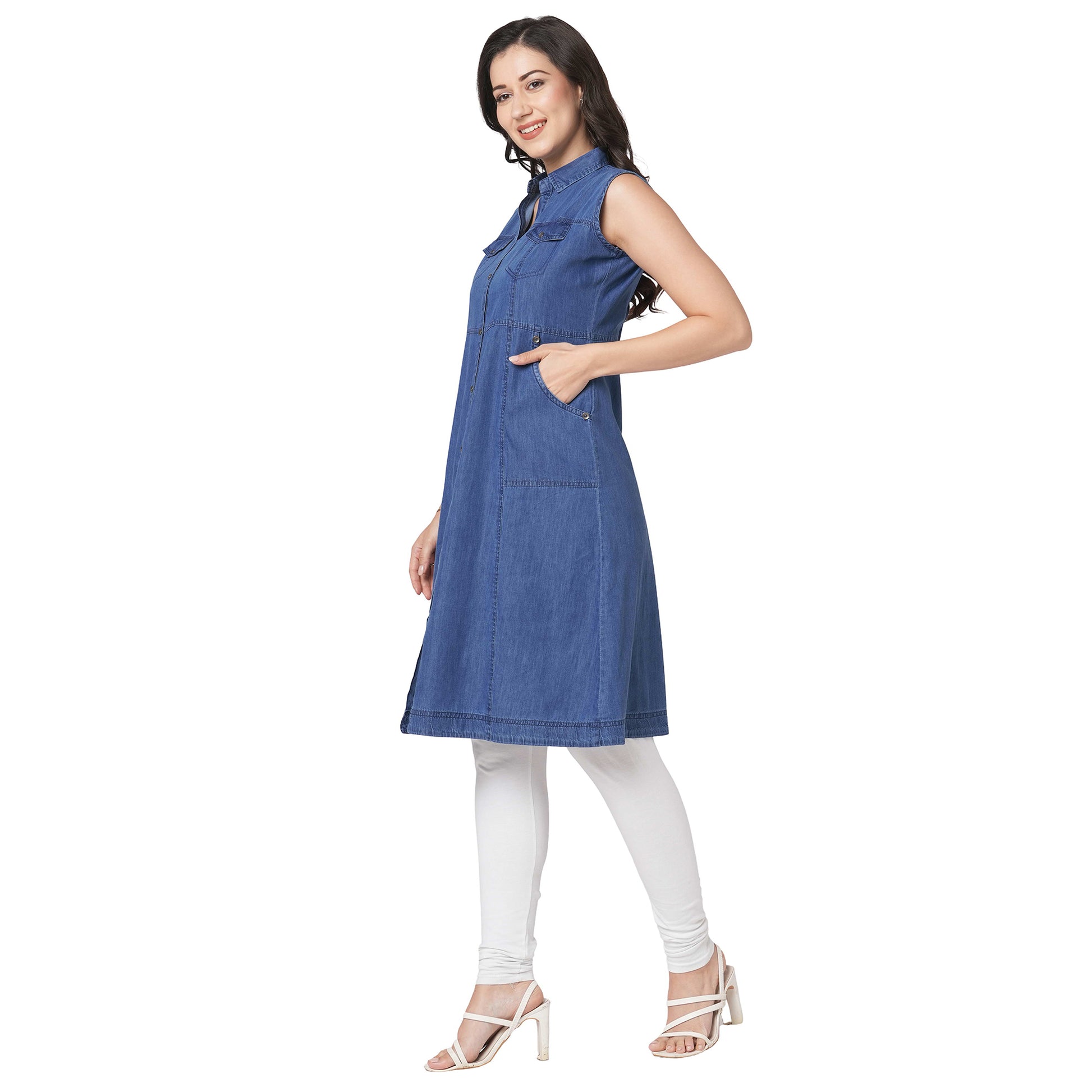GIA Denim Aline Kurti, Separately 3/4th Sleeves Given with Kurti