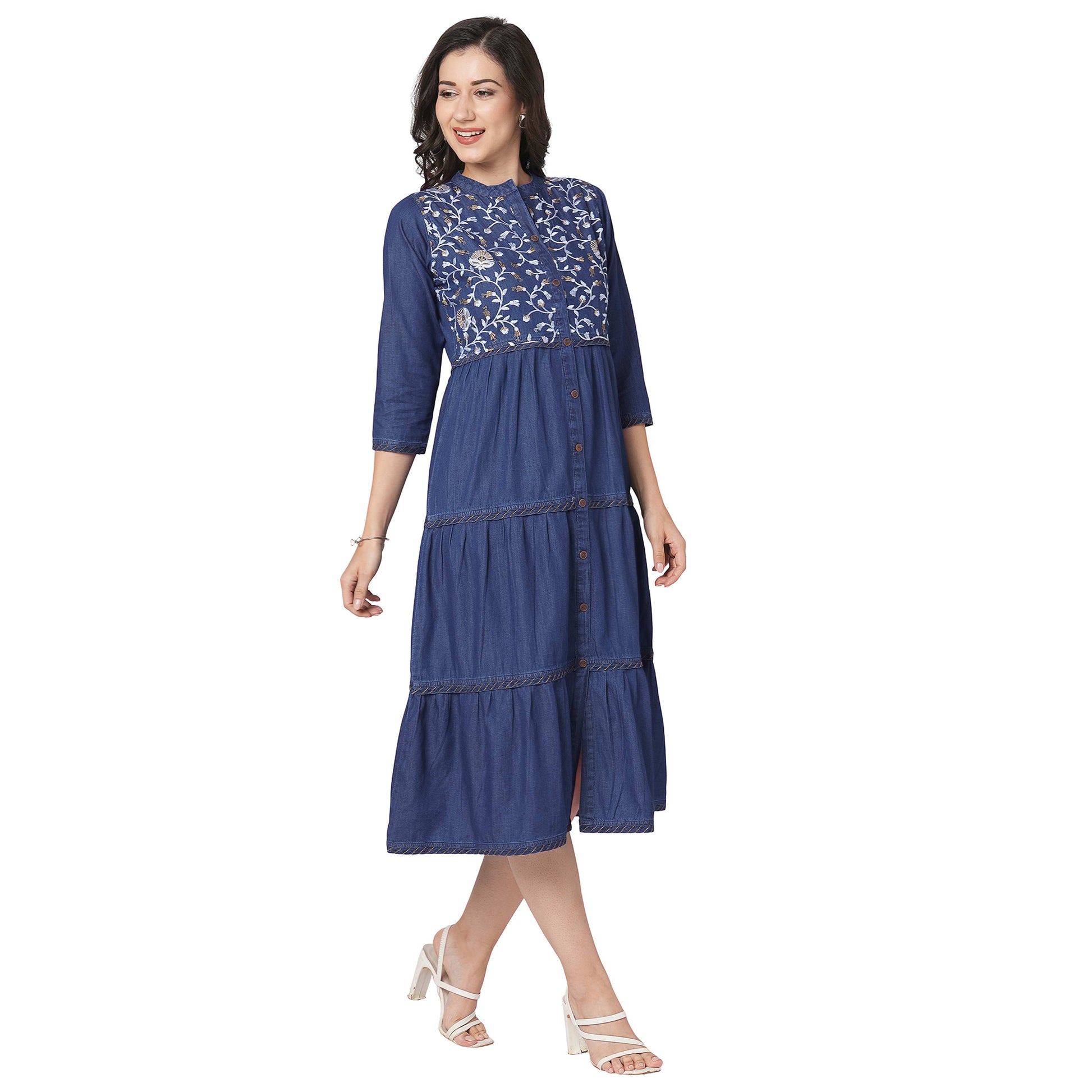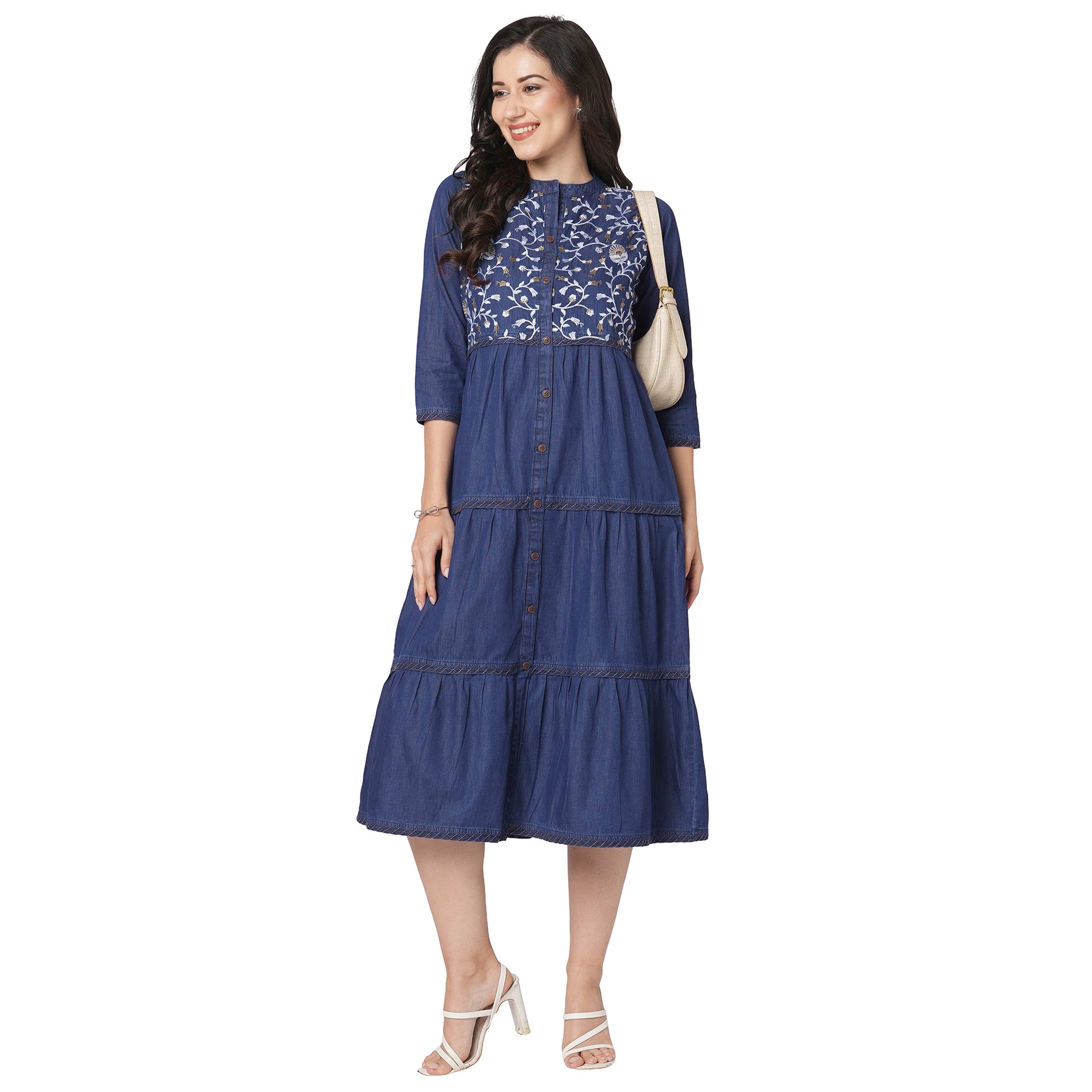 GIA Denim Classic Dress for Women, All time All Seasons Fashion