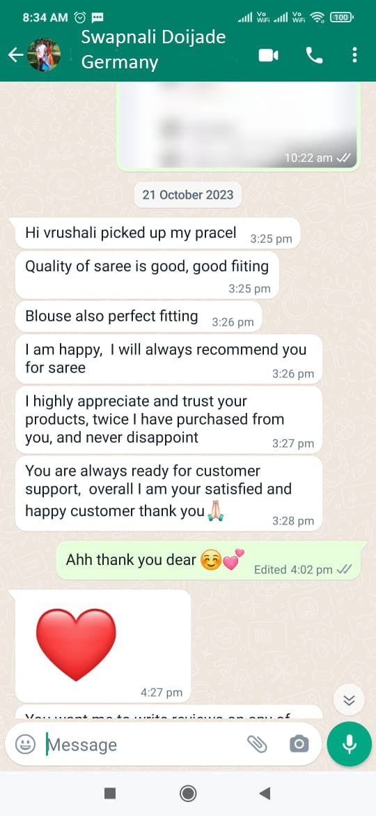 - Length waist to ankle 40 inch. 5.2 to 5.4 ft height can prefer this saree.