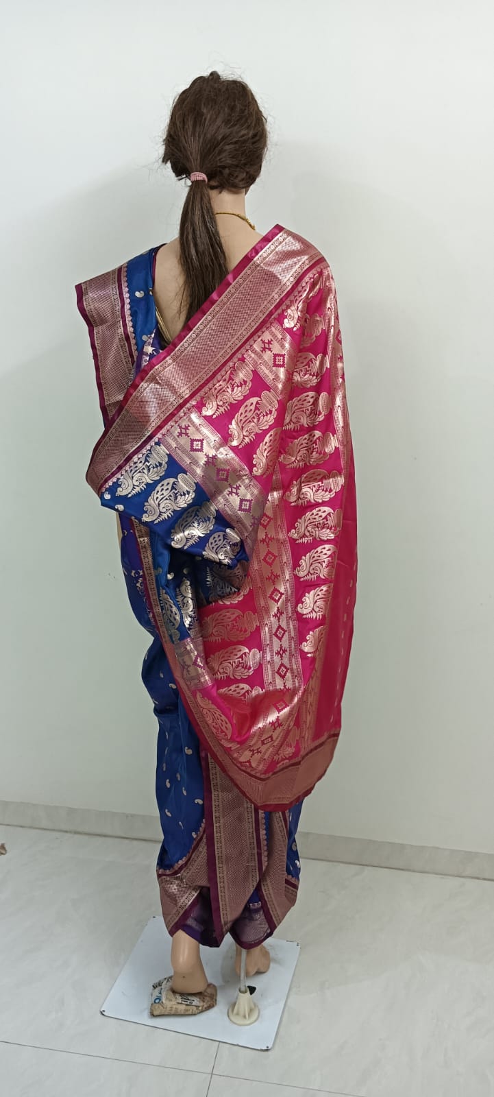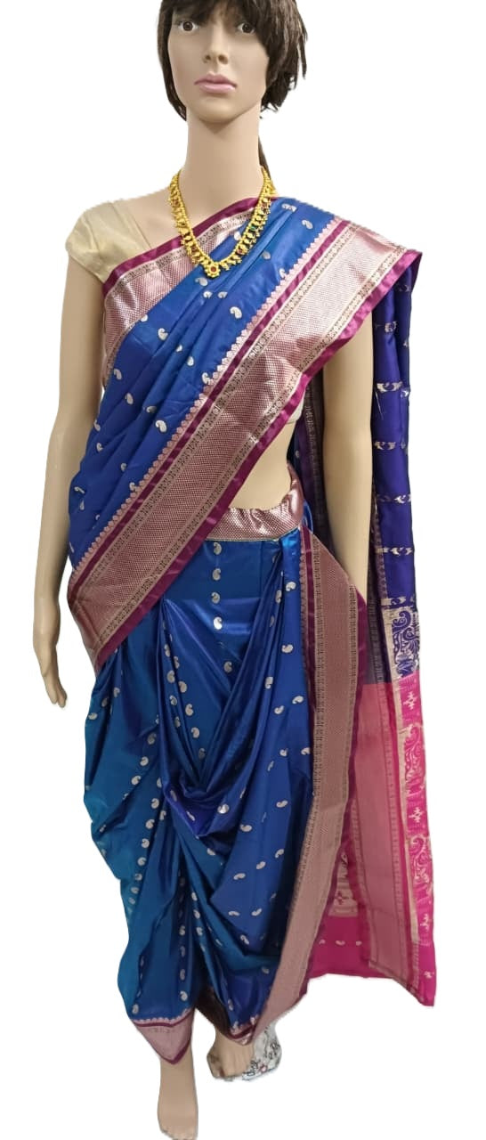 nauvaari sarees for women Gauri Ganpati Special - Maau Silk Blue dhup chav