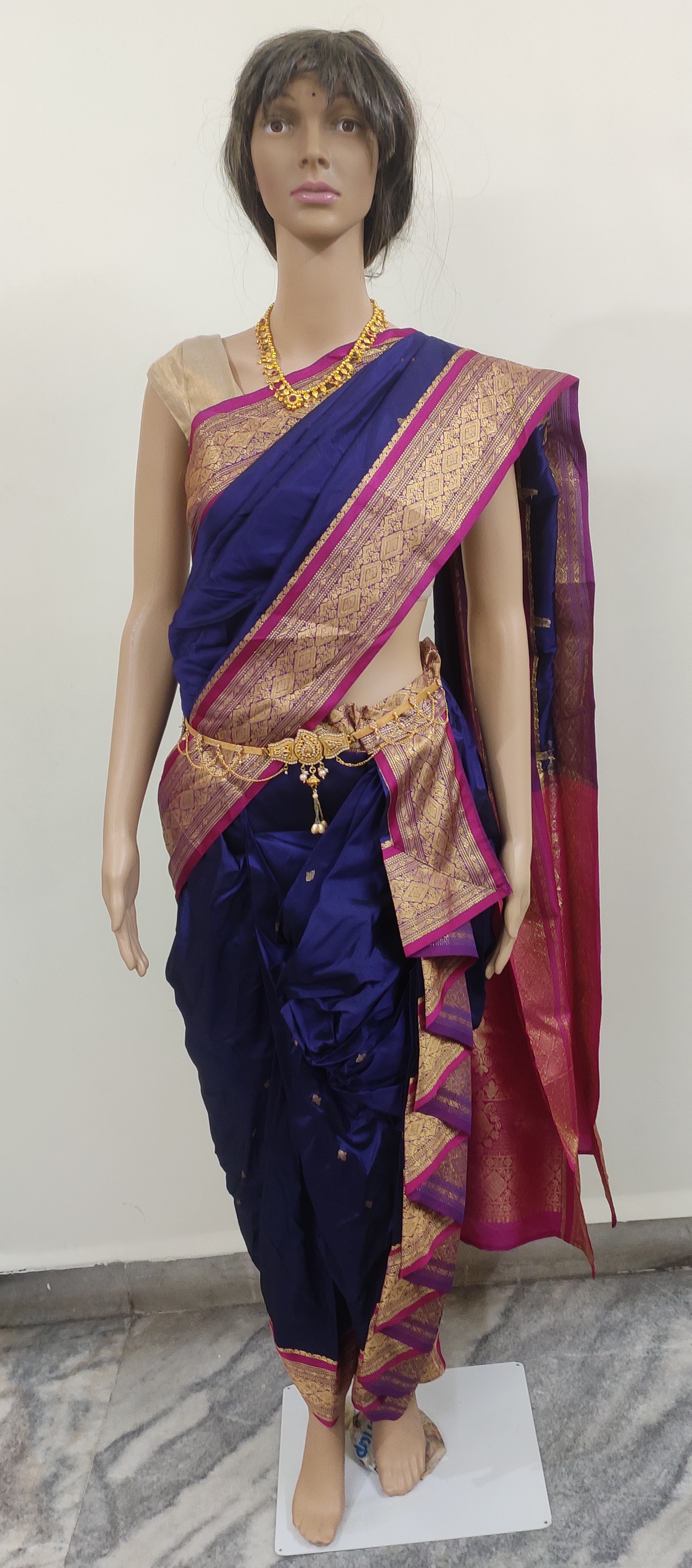 Nauvari saree for Women, Kanjivaram wedding collection (For Bride brinjal blue)