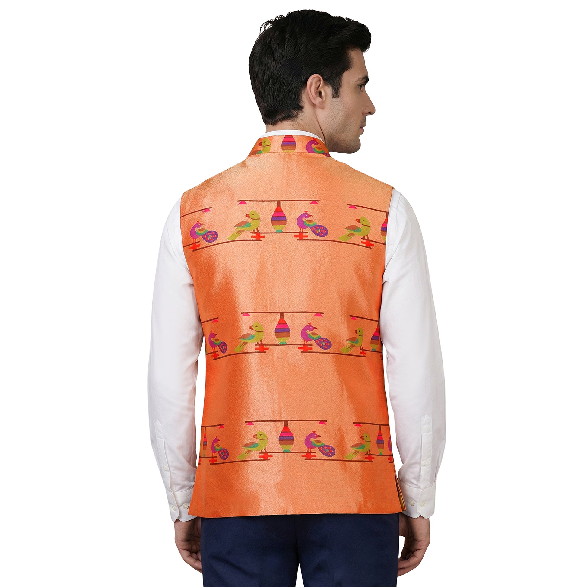 - Elevate your ethnic look with this elegant Paithani Jacket Crafted from rich silk it features vibrant Parrot and peacock motifs inspired by traditional Paithani weaving.