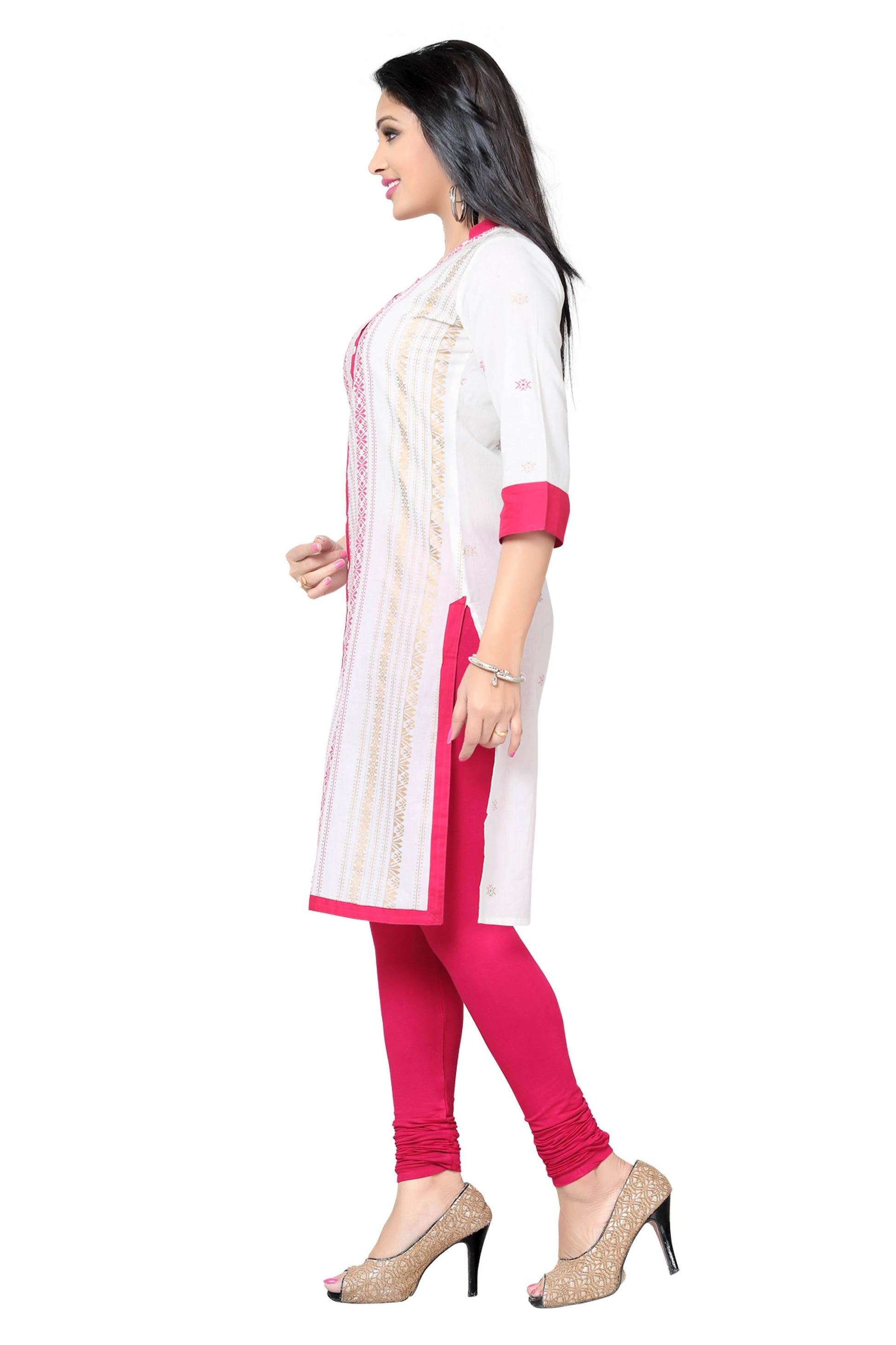Women's Cotton Kurti Soft White and Pink Office Wear
